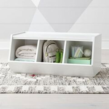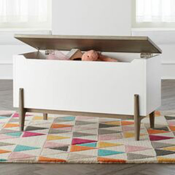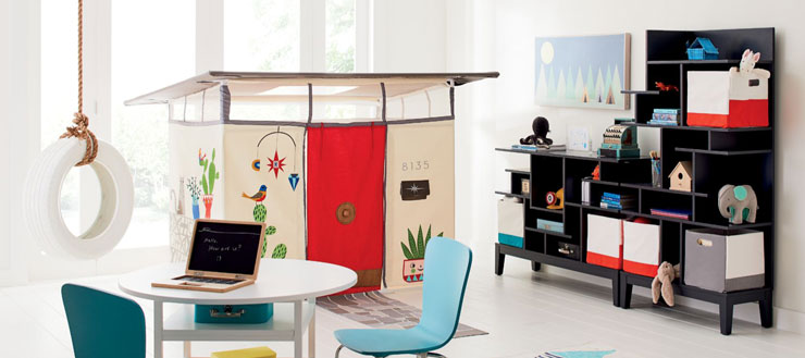 Making sure that every item has a ‘home’ is the first step to curbing the clutter and minimising mess. However, while they might be practical, furniture such chests of drawers and shelving doesn’t have to be dull. You can buy units such as our Robot Bookshelf or the Storagepalooza II White Wide Toy Organiser, which are as fun as they are functional. Alternatively, look for storage boxes such as the Rue Washed Red Stackable Storage Bins. These make for easy organisation and can be moved when it’s time to get the duster or the hoover out.