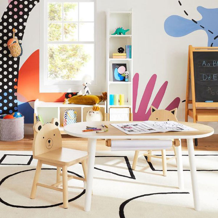 While playrooms tend to be where kids dive into games and activities, they can also be the space where they lose themselves in a book. Create a dedicated ‘quiet corner,’ where your youngsters can immerse themselves in stories and practice their reading. Our Giraffe Bookcase is ideal for safely storing books, while floor furniture such as our Large Octopus Bean Bag Chair, encourages children to take a break from play and explore the educational aspect of their play area. We can even offer some superb rugs to give the quiet corner a cosy aspect. To inject more fun into things, check out rugs such as our Animal Shaped Rug, Multi Colour Round Splatter Washable Wool Rug, and our Outer Space Rug.
